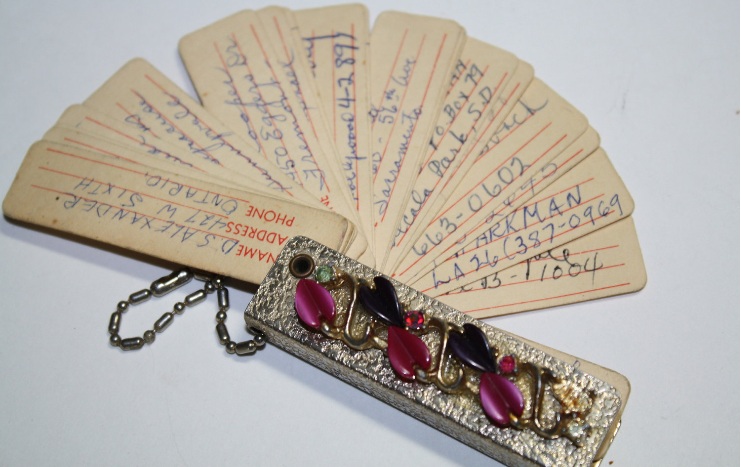 3. The system organizes the contact information in an address book, grouping contacts by metadata tags such as company name or job title.